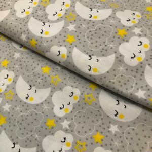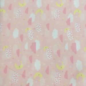 Tricoline rosa com nuvens,lua
