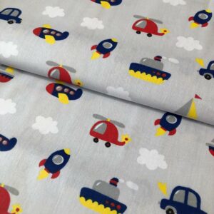 Tricoline estampado aviões cinza...